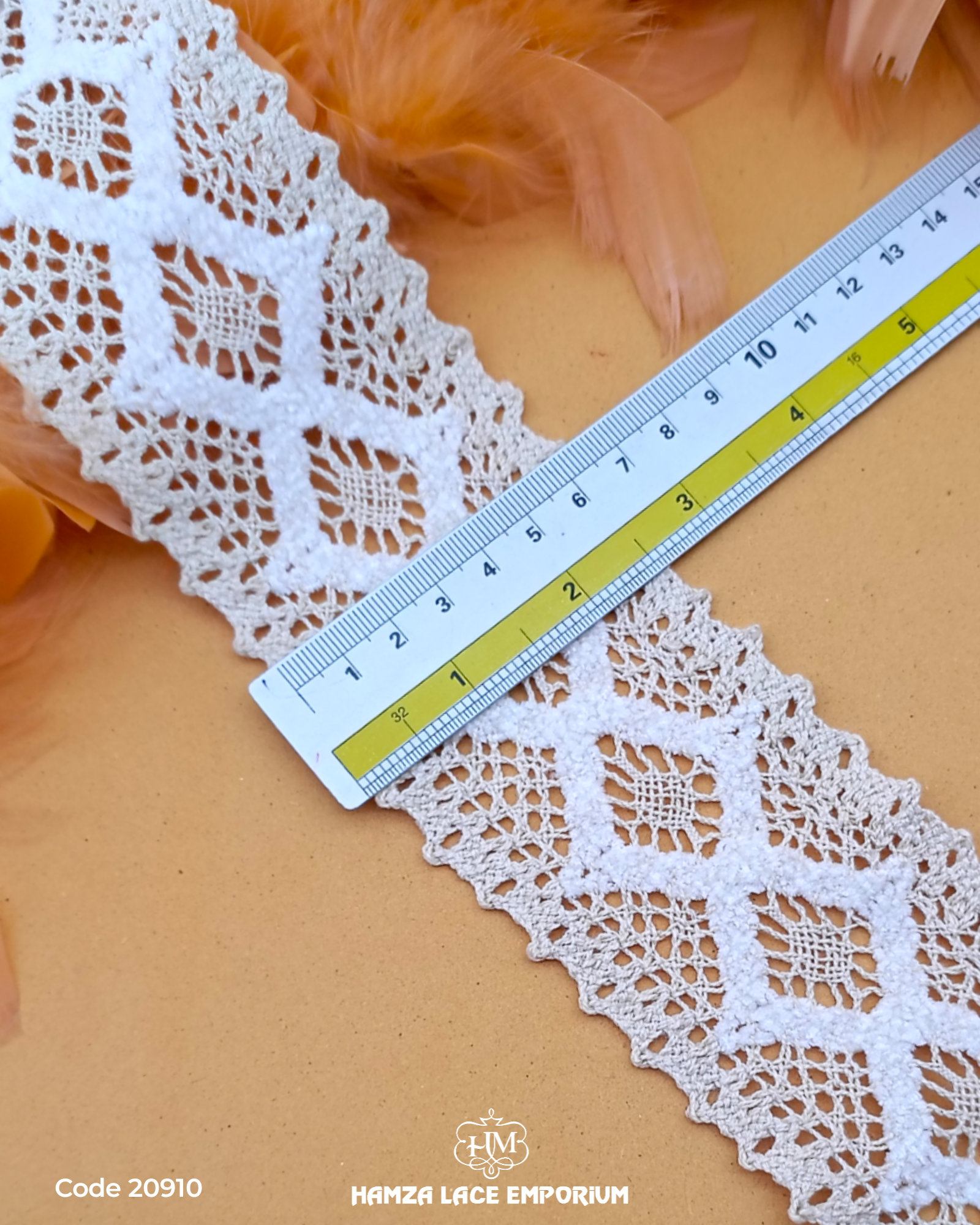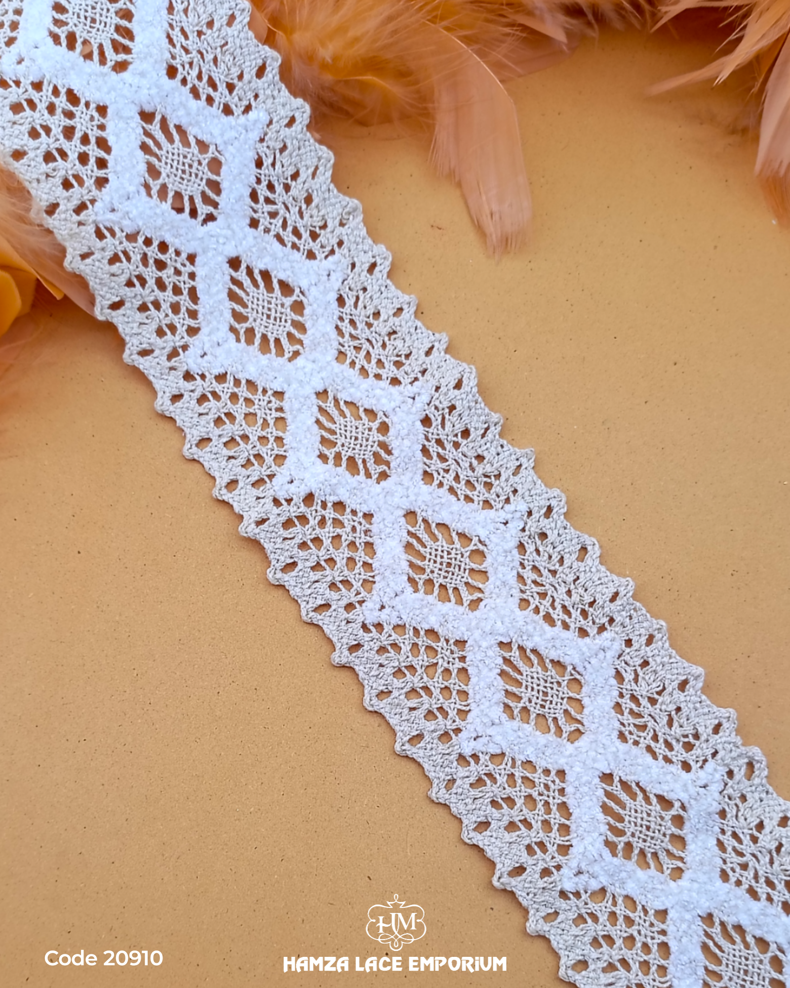 "Crafted with expertly crocheted lace, our Center Filling Lace 20910 adds an elegant touch to any project. The intricate design showcases the craftsmanship of our skilled artisans, ensuring a high-quality and unique piece. Perfect for adding texture and depth to your creations."